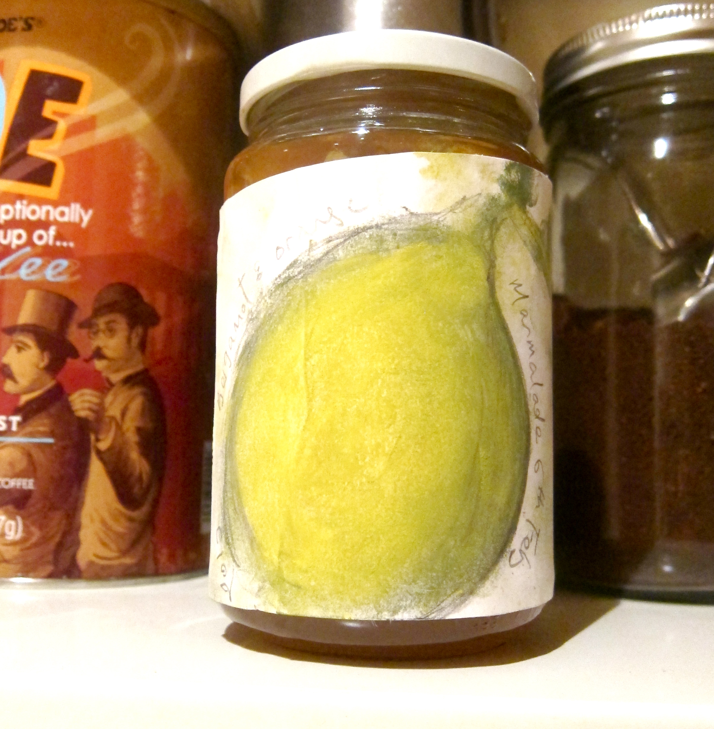 To clarify, you can’t die of botulism from a dodgy jar of marmalade; leave that to the pickled cucumbers (although apparently they won’t kill you either, see the marvellous Sandor Katz). Pretty much the worst thing that can happen is mould. To avoid this, you want clean, hot jars, hot marmalade and sufficiently high levels of sugar and acid to inhibit the growth of bacteria. 212F is enough to kill off all the nasty buggers. An instant-read thermometer is a wise investment here; It doesn’t have to be hugely expensive and it’s a very handy piece of kit, good also for making fresh cheese, checking roasted meats and deep frying.