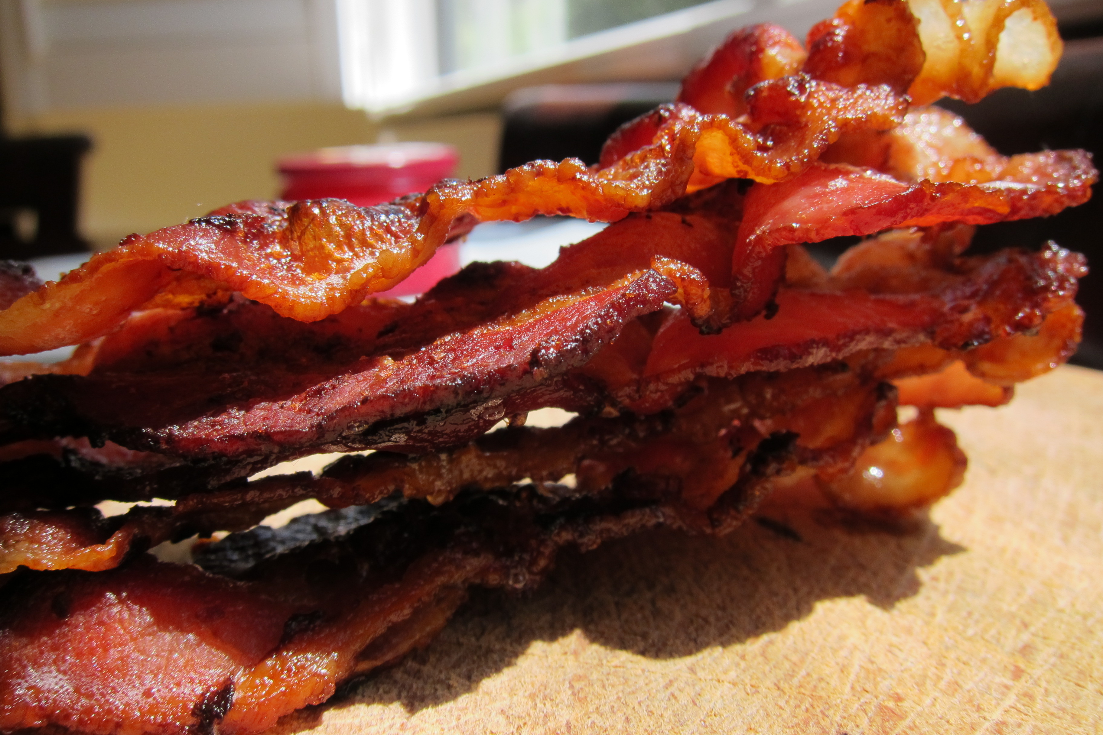 Let your bacon come to room temperature. This allows the fat to release, and ‘loosen’ slightly. Lay the bacon in a large, unheated pan. Make sure the rashers don’t overlap. Place the pan over a medium heat. Cook the bacon in its own fat – do not add any. This ensures you have a few arteries to spare at the end. Let the bacon sizzle away until crisp. Flip only once (pretend it’s steak). Drape on paper towels so some of the grease can be absorbed. Embed in the fluffiest bread imaginable. Doctor with whatever else you feel it needs. Die happy.