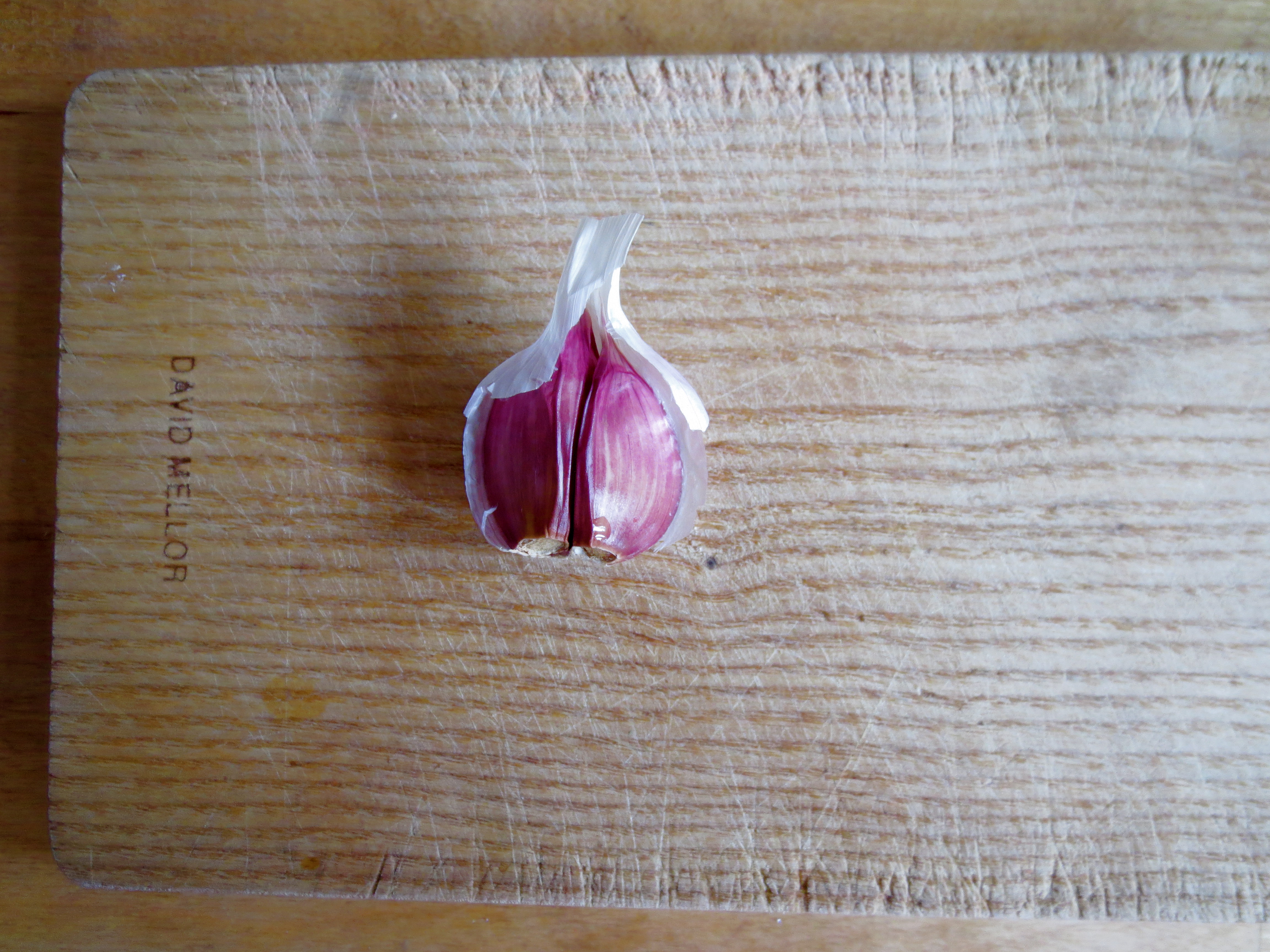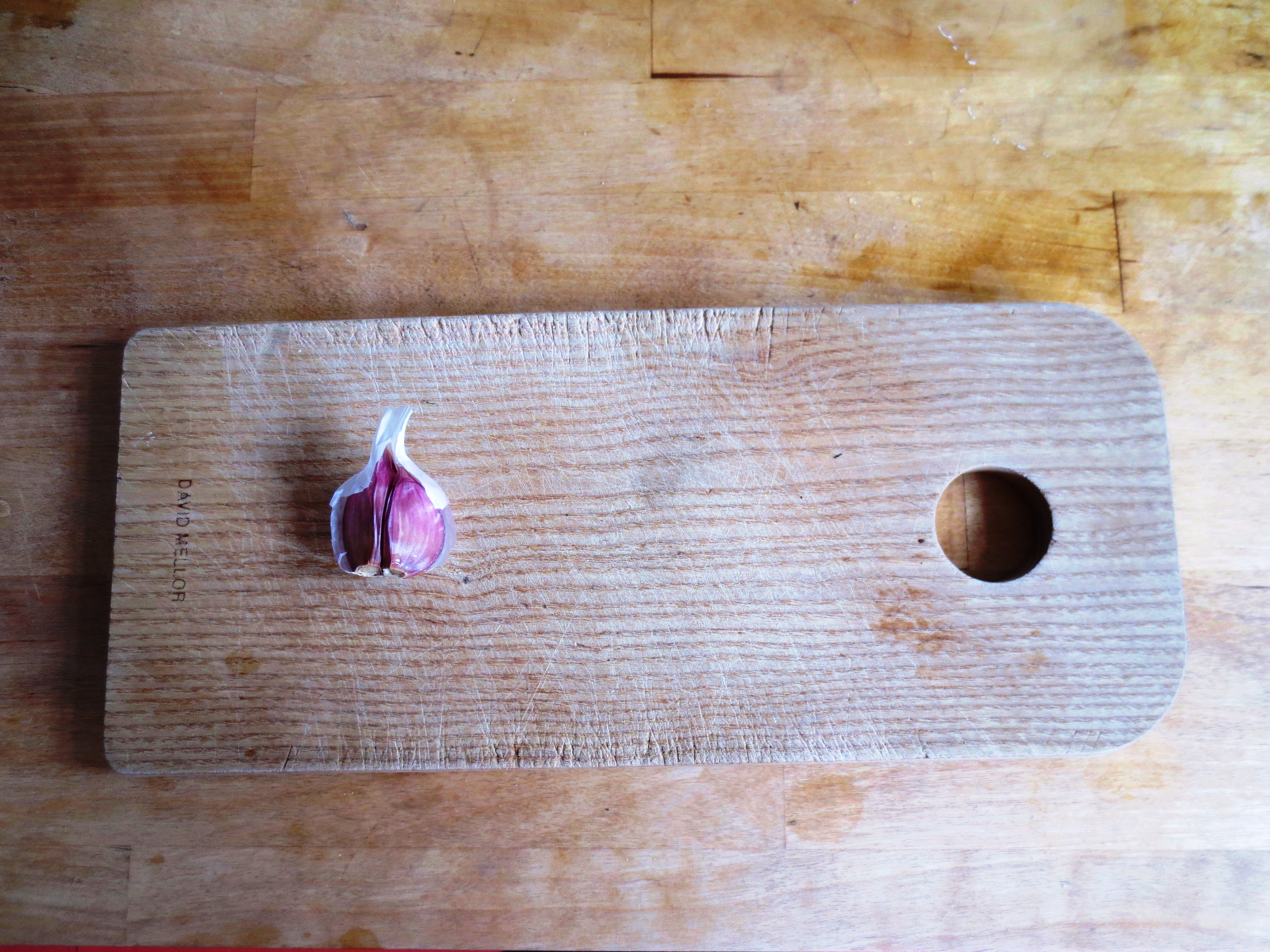 So I bought the chopping board, and the beautiful, slightly MI5 assistant wrapped it in white paper and slipped it into a black paper bag, and we emerged into the Sunday sunlight and walked to the Tate. All the way there and all the way back, (and during) I thought about the board; what I would anoint it with. Garlic. Lemon zest. Parsley or basil. Splat, Chop, chop, scrape, crunch, chop, chop, chop, chop, swipe, swipe, bang. Smile. Repeat to fade.