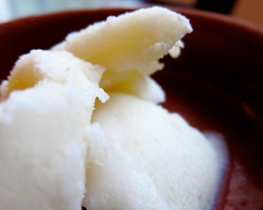 The blackcurrants are washed and not dealt with in any way, the ‘beard’ still intact. Then they are gently heated on the hob, with the tiniest splash of water along with the sugar. They are cooked when the skins split, and then you eat them like that with ice cream, yoghurt etc. Or once cooked you can push them through a sieve to get a purée. They still retain their tartness, despite sugar, and always arrive in the same way; offered in an old ice cream carton, from a muddy hand, or a repurposed punnet. Some currants will still be attached to the stalks, leaves will be amongst them, the colour reminiscent of beetles. Or ink. Or soot. They are not glossy. I tend to eat them raw as I work my way round the allotment.